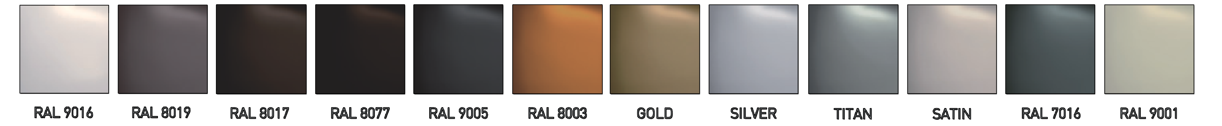 Culori permanent in stoc: alb, maro, argintiu, bronz, titan. La comanda, aducem din toata gama de culori de mai jos.
