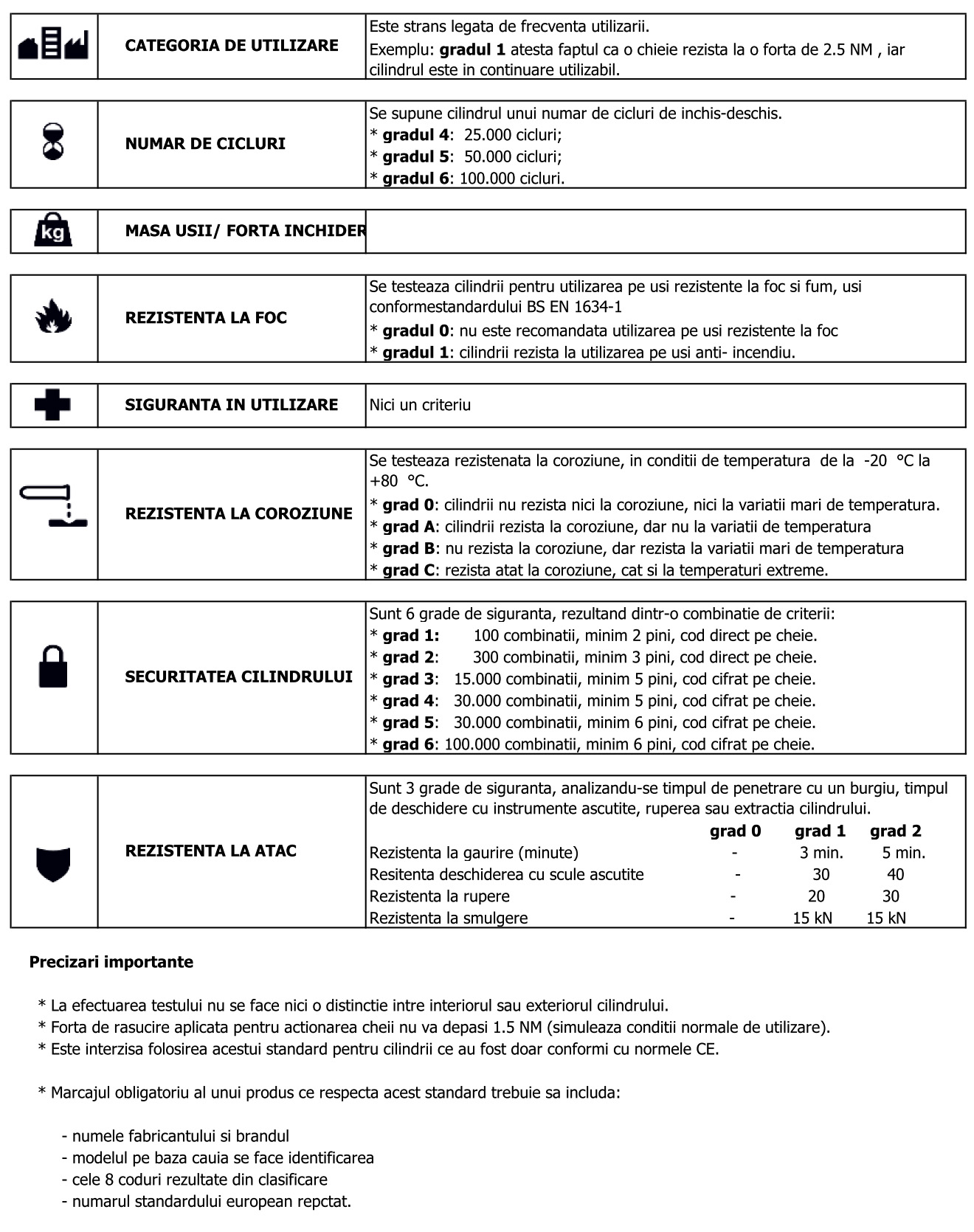 Denumirea completa a standardului este: " Feronerie pentru cladiri- Cilindri pentru usa- Cerinte si metode de testare"